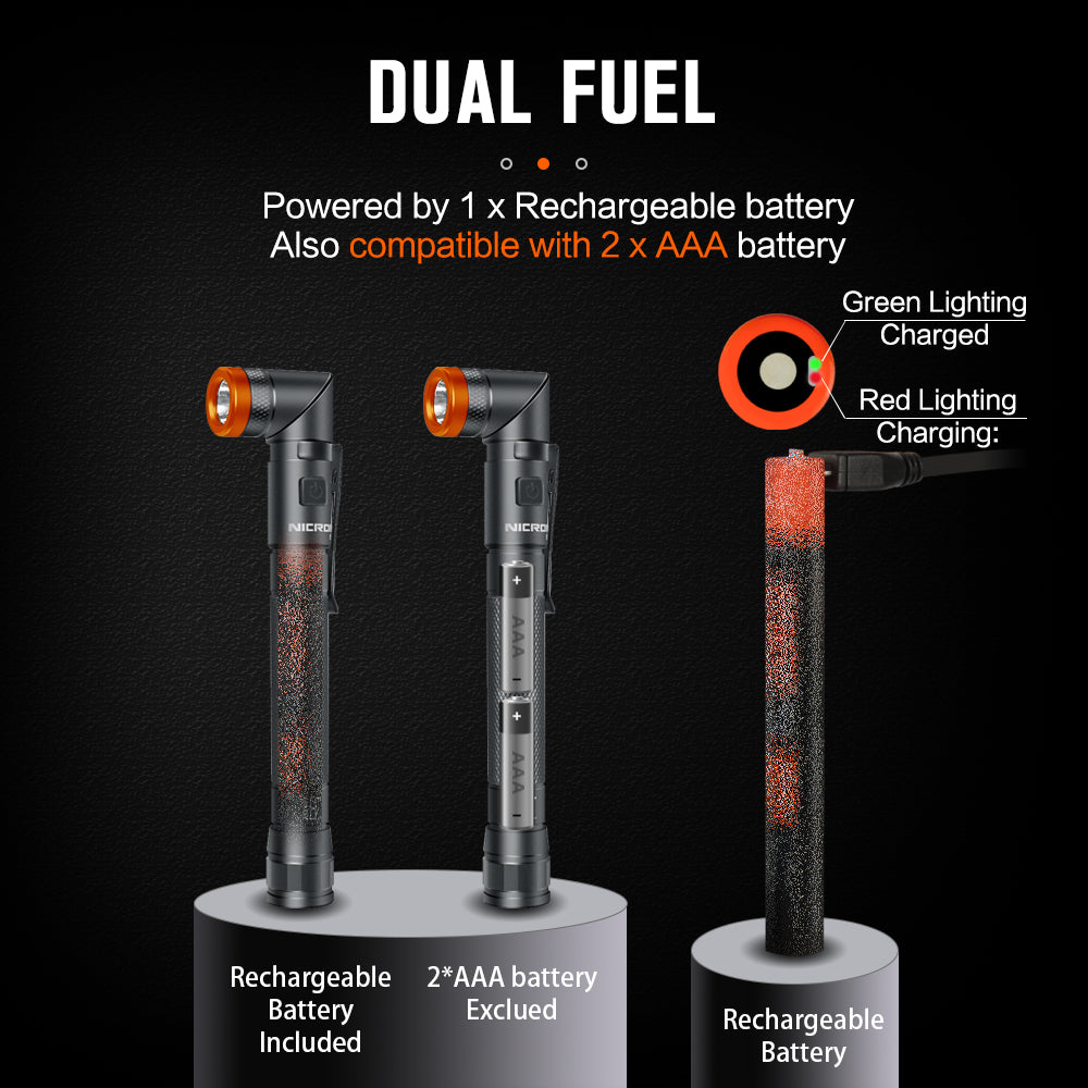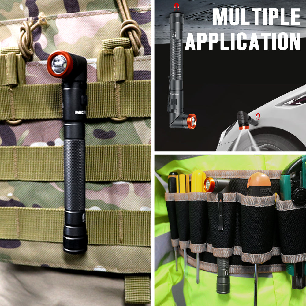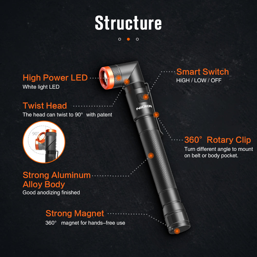 NICRON B73R Pen Flashlights 90 Degree Rotatable Flashlight 300 Lumen 4 Modes with SOS Rechargeable Flashlight, IPX4 Waterproof, Magnetic Light for Work,Repair, Emergency