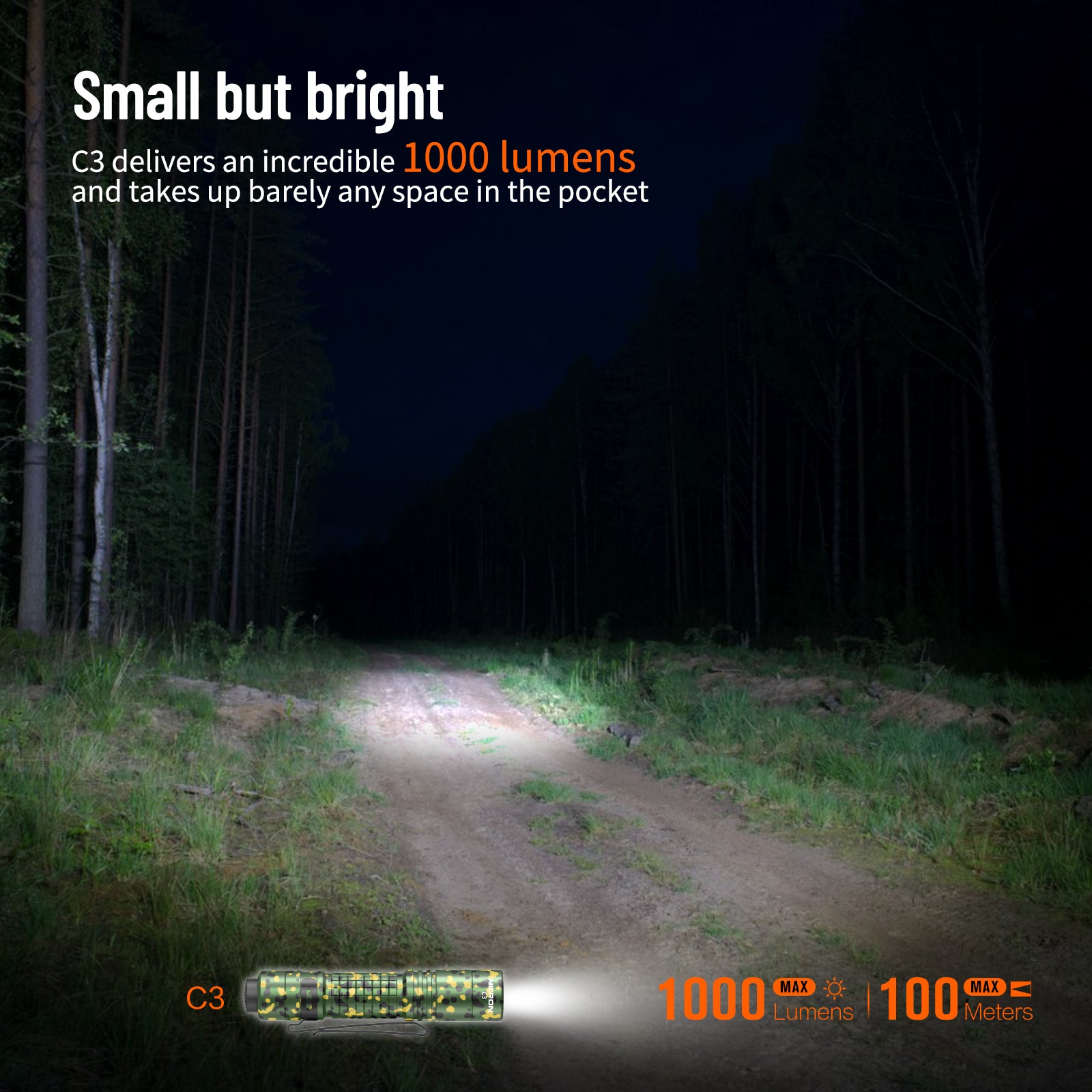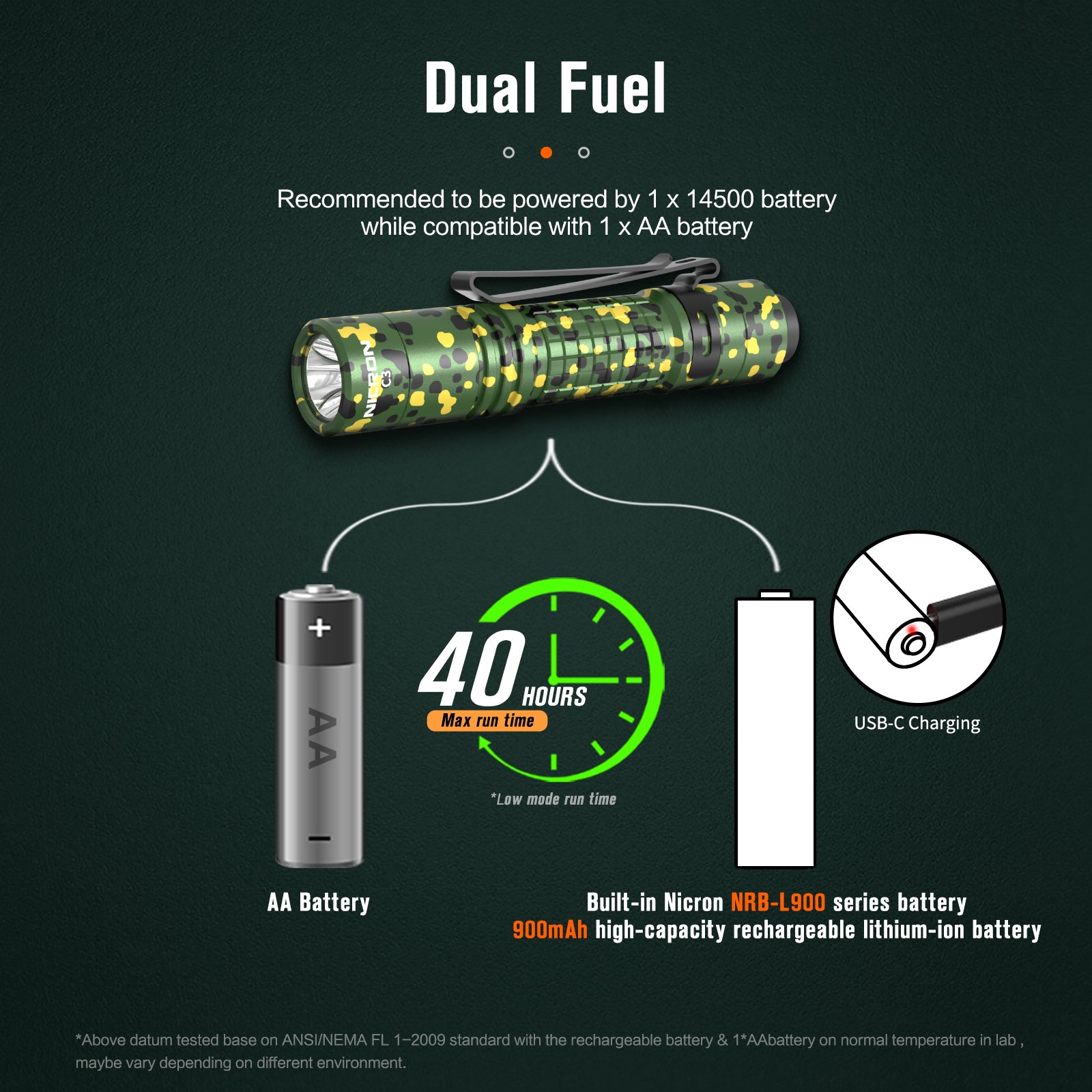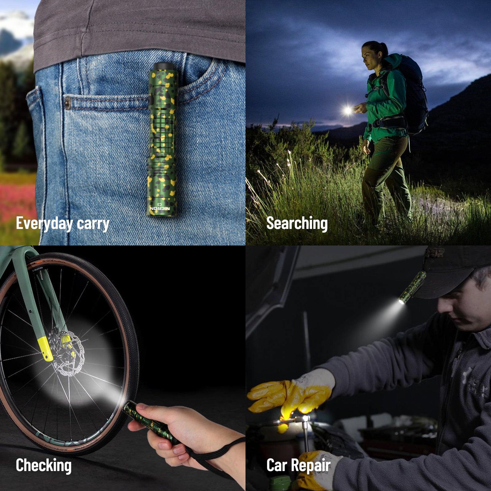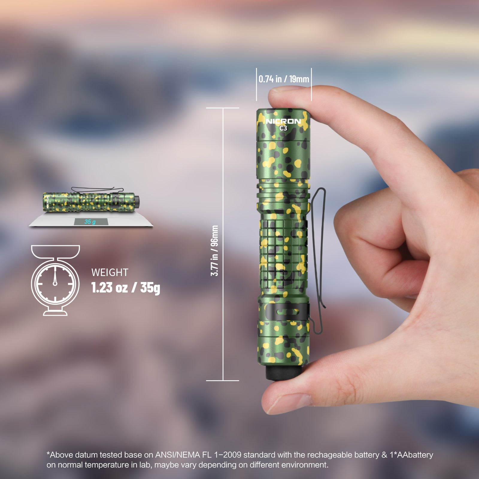 NICRON C3 EDC Flashlight, 1000 Lumen Poket Light Compatible with AA Battery Rechargeable Flashlight, Tail Switch Small Flash Light with Clip for Home Outdoor Camping, Hiking (Camouflage)